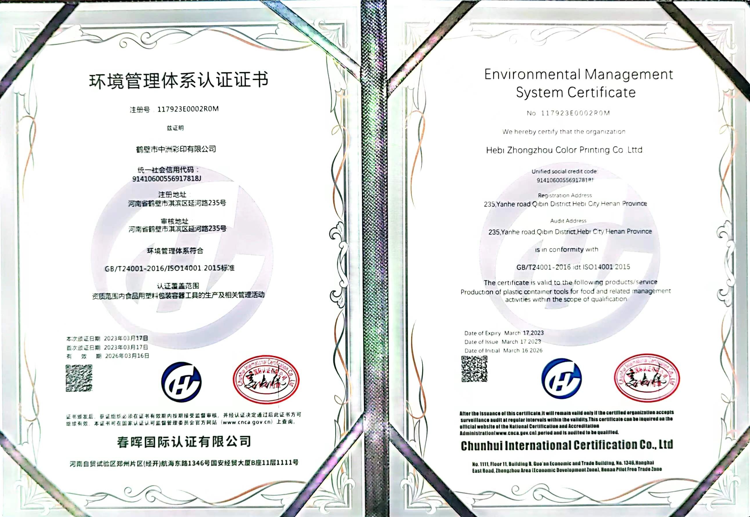 鶴壁市中洲彩印有限公司成立于2010年,位于鶴壁市開發區延河路235號,是一家集創意設計、制版、印刷、復合、制袋為一體的塑料軟包裝高新技術企業。公司占地42畝,建設有無塵凈化車間8000平方米。現擁有中、高速電腦對版印刷機3臺,干式復合機1臺,無溶劑復合機3臺,制袋機20臺,自有設計工作室,總投資5000余萬元。公司現有員工120余名,其中專業技術人員50人,年產值1.2億元。公司于2020年1月份通過了ISO9001質量體系認證,是目前豫北地區較大的塑料軟包裝制作企業。 →